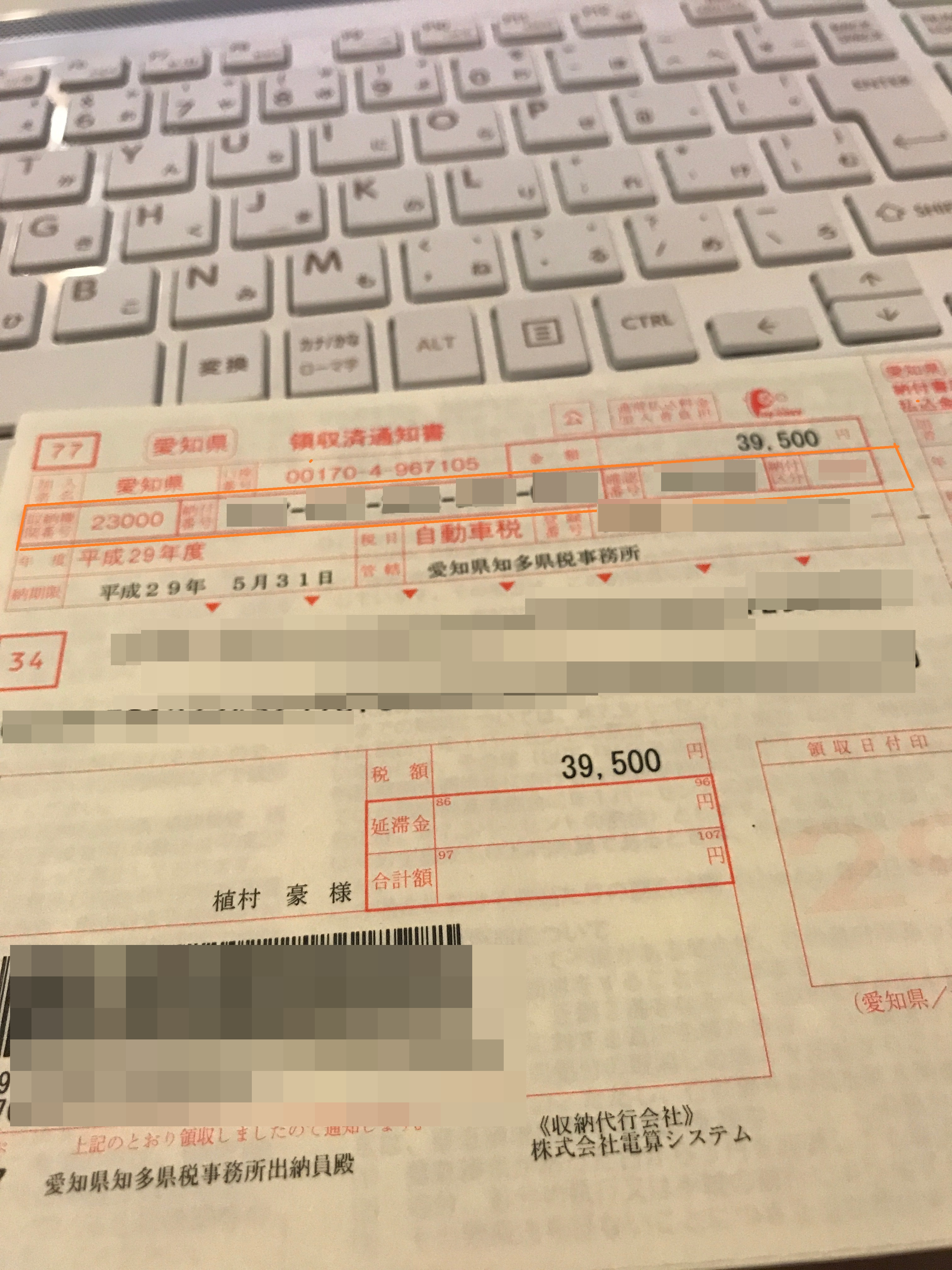 これは郵送で届いた納付書を確認してみると、納付書の税額のすぐしたにそれらの項目が記載されています。