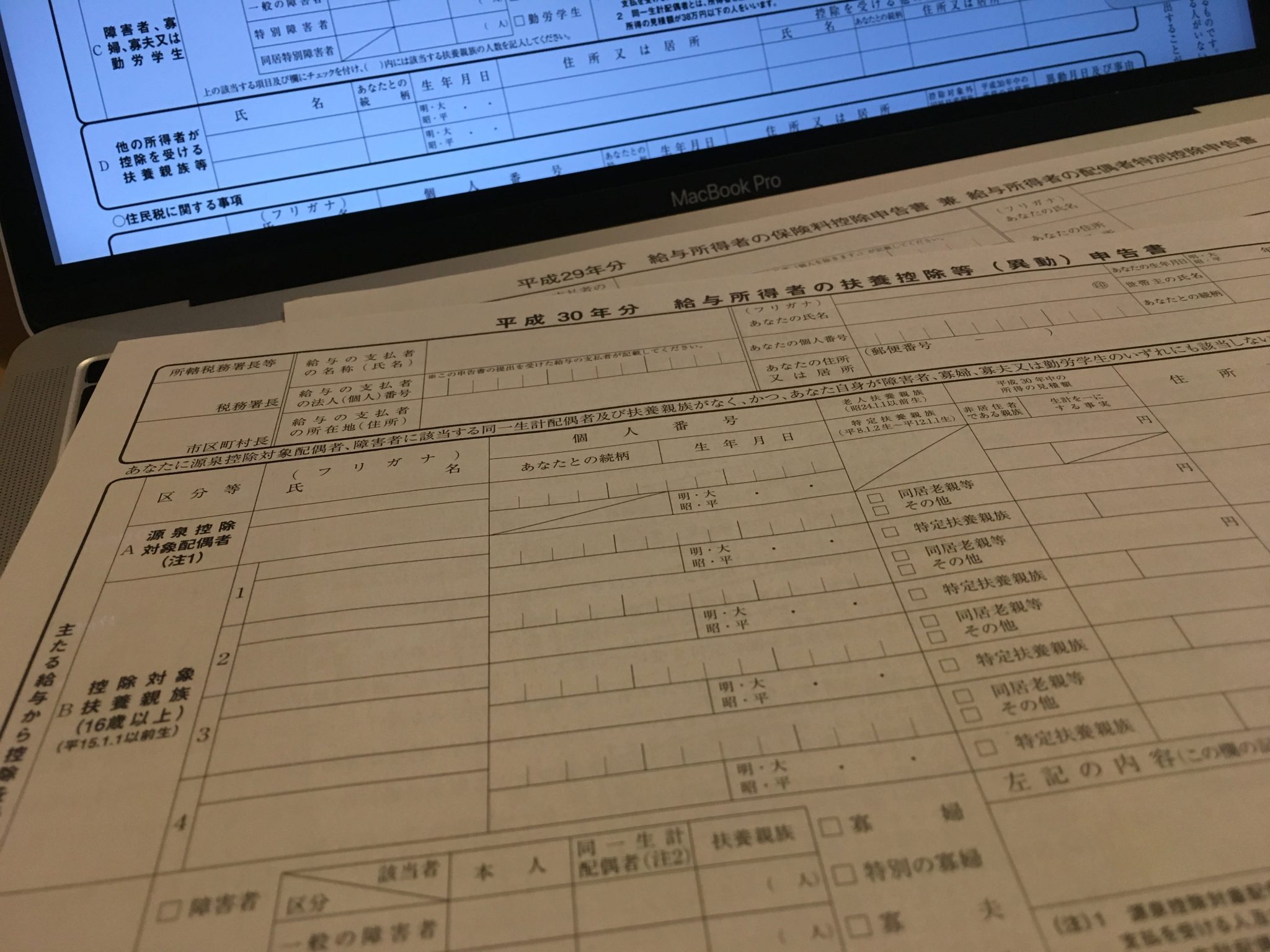 ちなみに平成29年の扶養控除等申告書は、去年の年末に記入しているはずです。