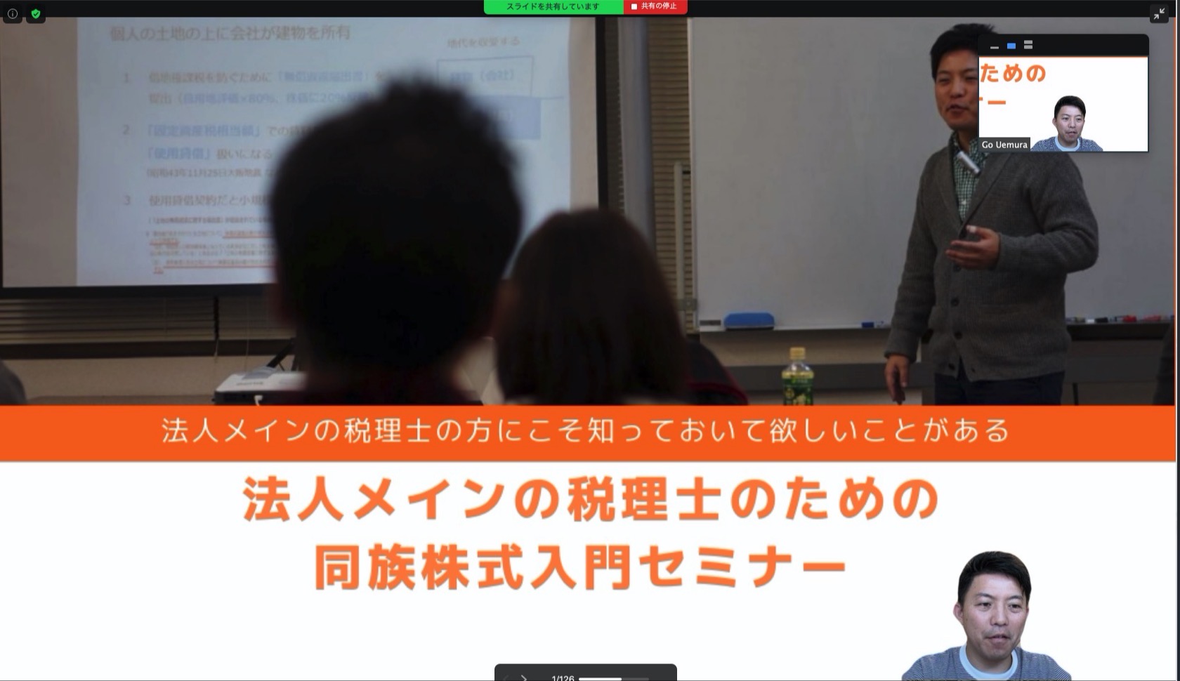 この画面共有を使って、打ち合わせをしたり、パワポを画面共有してオンラインセミナーをやったりしています。