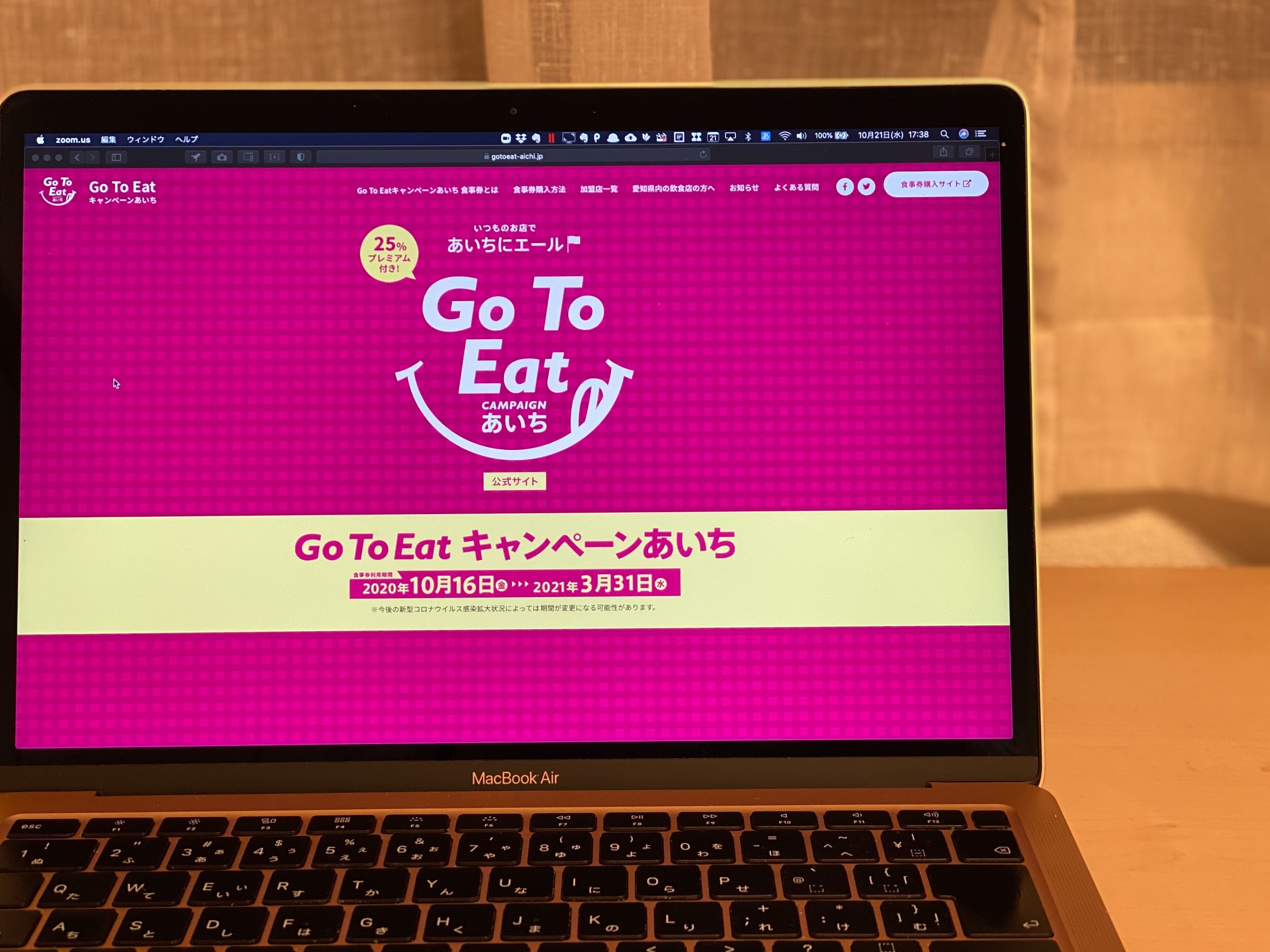 先日から「GO to Eatあいちキャンペーン」の申込みがスタートしました。