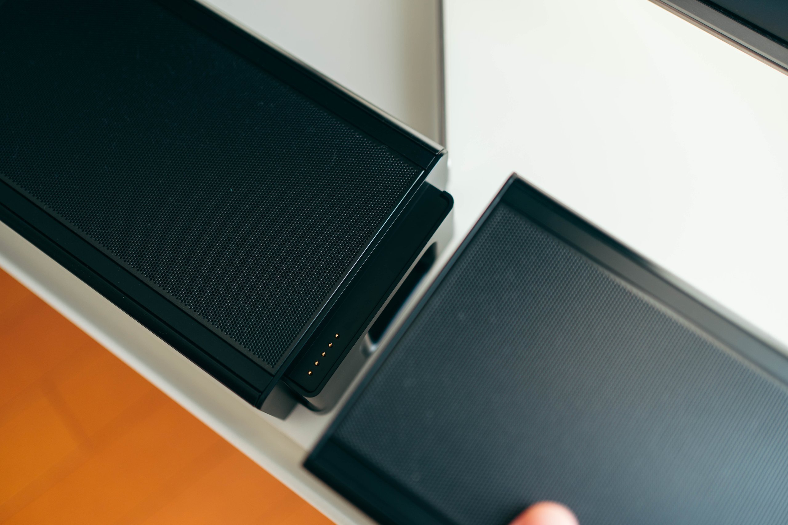 はずしたリアスピーカーは、はずしたままでテレビから離れた場所でも音を聞くことができますし、リアスピーカーは、本体に装着したとき充電できています。また、リアスピーカー自体にもUSB-C端子がついているので、本体に戻さずとも充電することはできます。