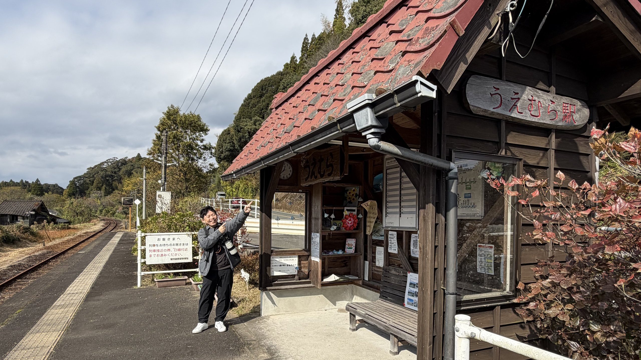 さっそく駅で記念写真を撮ってもらいました。無人駅でもSuicaの認証くらいあるかと思いきや、それすらありません。