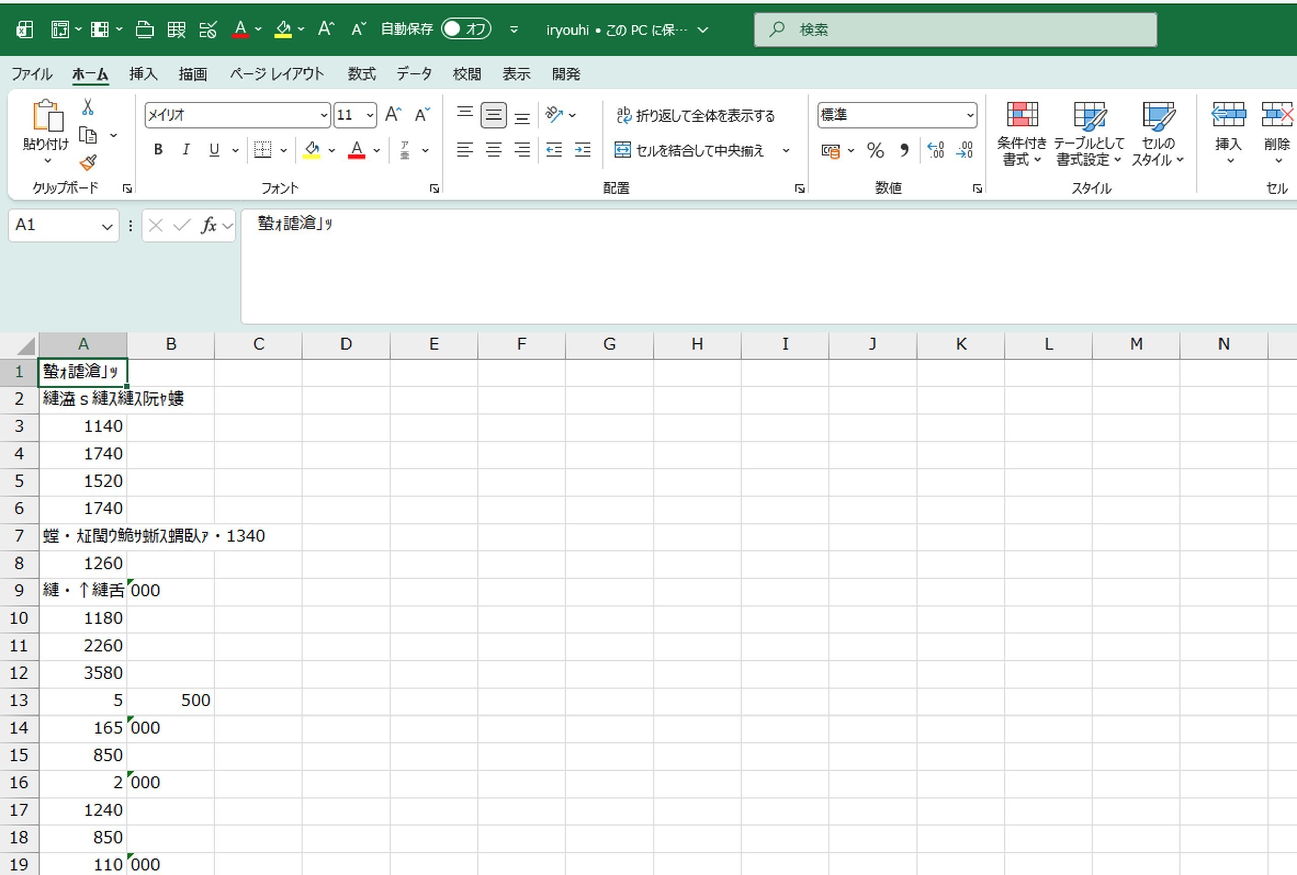 ちなみに。UTF-8でWindows版のExcelで開くと、こんな感じで文字化けすることがあります。