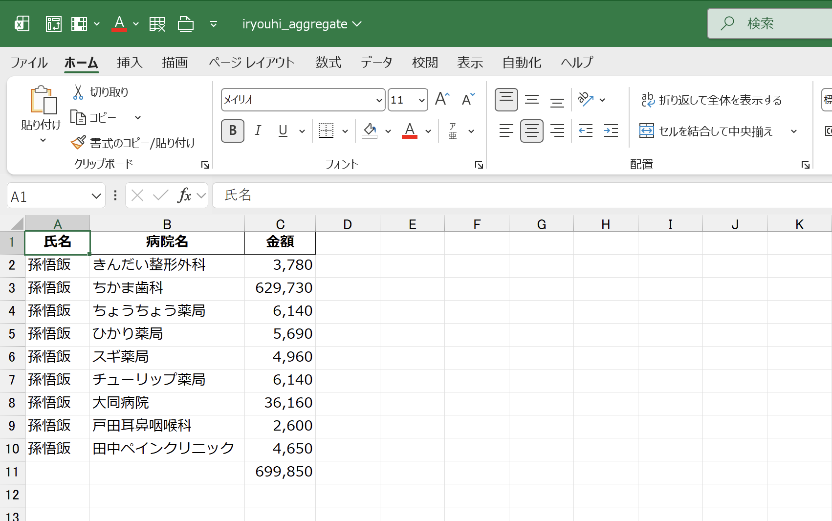 集計だけのデータをとり出せます。一応、合計額も合っています。
