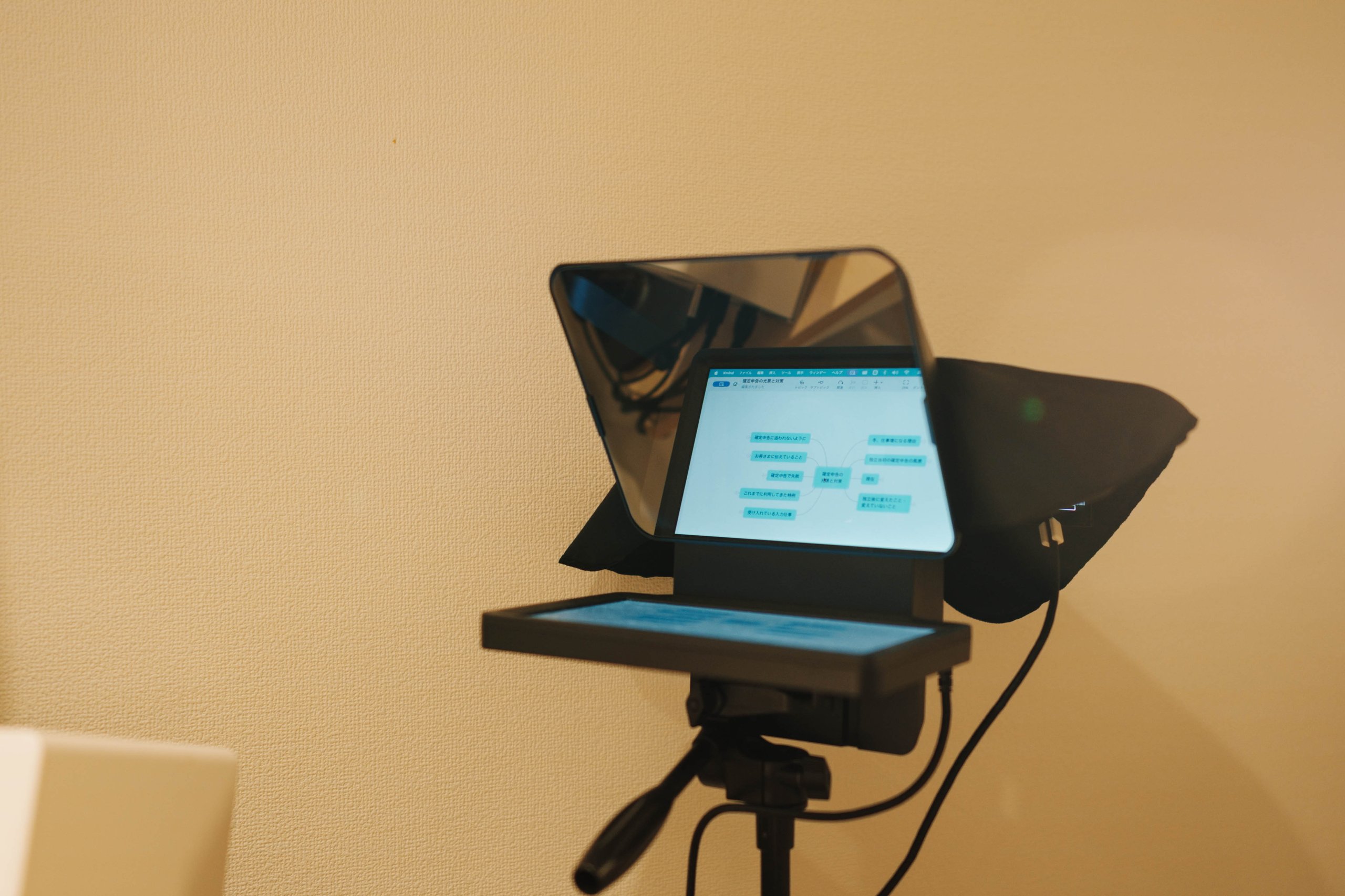 OBSとZoomを利用してオンラインで開催、現状はElegato Prompter(小さな画面)を見ながら話をしています。