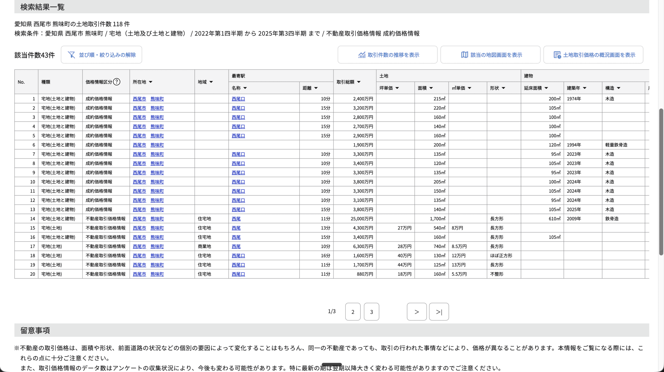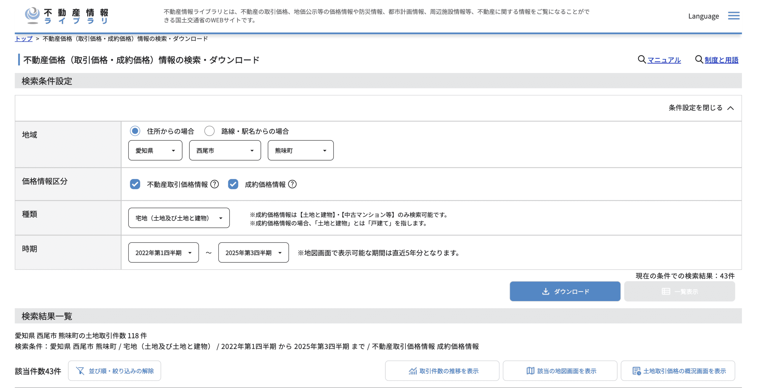 不動産情報ライブラリというサイトがあり、地域や期間を入力すると、