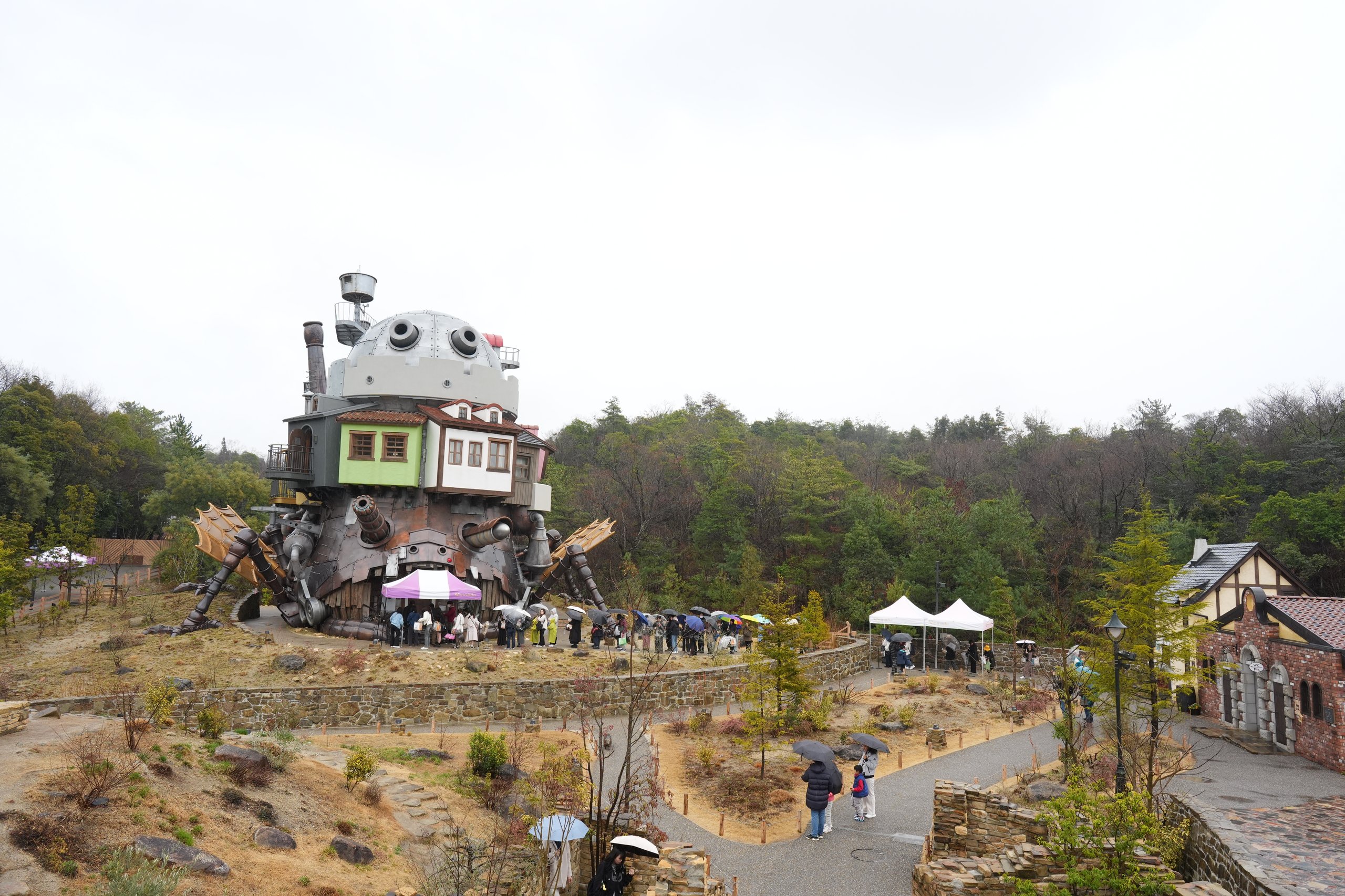 ジブリパークで人気があったのが、ハウルの動く城。ところが平日で雨なのにすごい行列…。