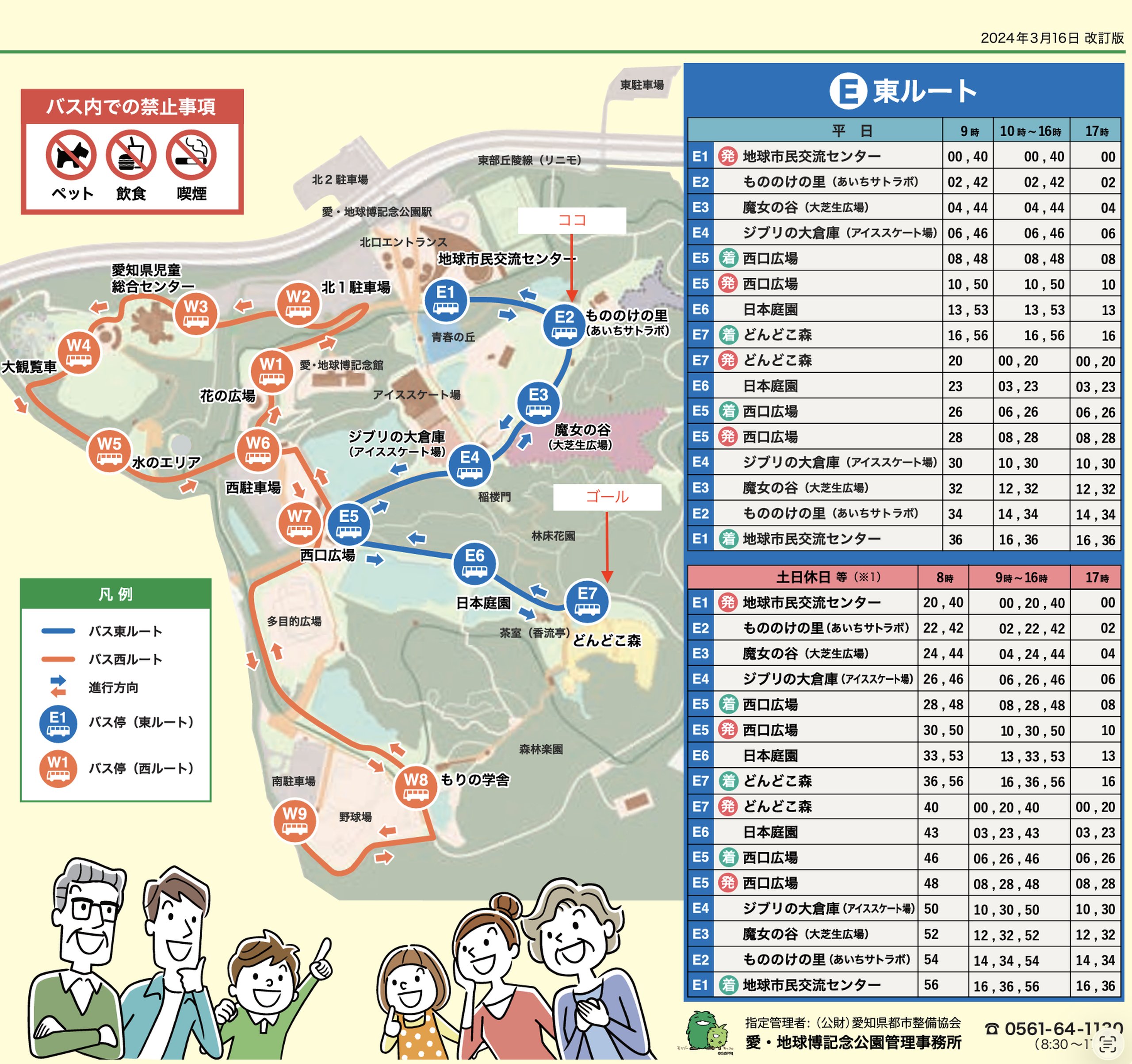 愛・地球博記念公園の園内バスルート・時刻表より引用(クリックで拡大)