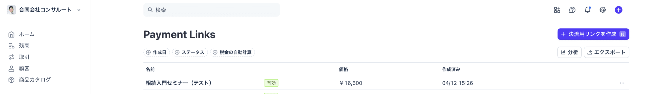StripeのPaymentLinksにも、追加されているのがわかります。